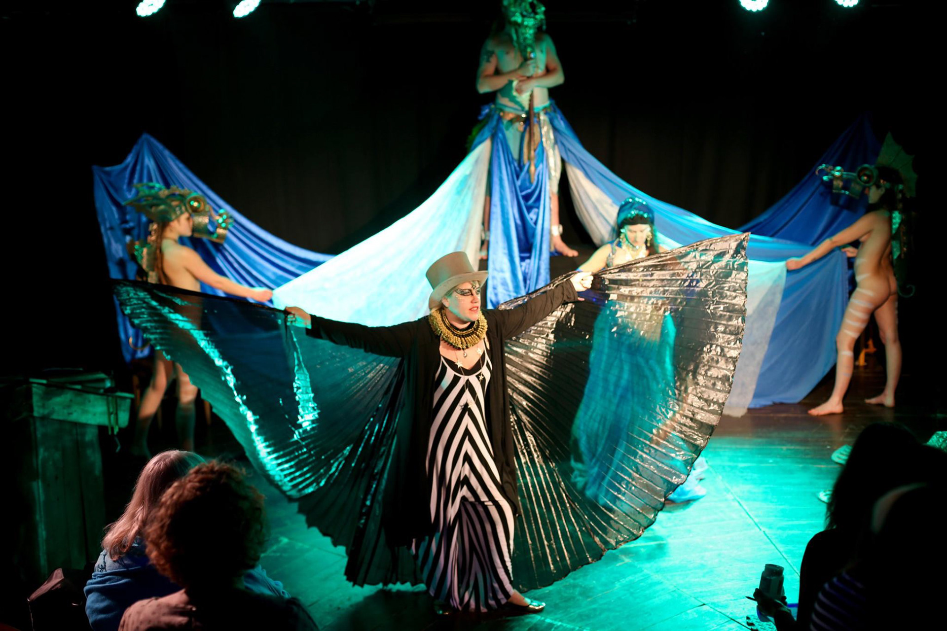 Set dressing, costume design and life modelling performance for an immersive life drawing production at the Spiegel Tent, (Brighton Fringe), 2019.